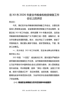 在XX市2026年度全市粮食和物资储备工作会议上的讲话.docx