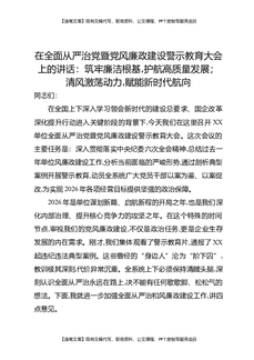 在全面从严治党暨党风廉政建设警示教育大会上的讲话:筑牢廉洁根基,护航高质量发展;清风激荡动力,赋能新时代航向.docx