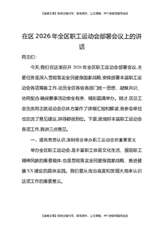 在区2026年全区职工运动会部署会议上的讲话.docx