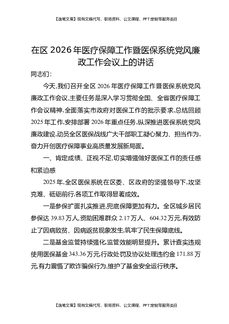 在区2026年医疗保障工作暨医保系统党风廉政工作会议上的讲话.docx