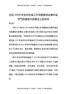 在区2026年生态环境工作专题推进会暨环境空气质量提升部署会上的讲话.docx