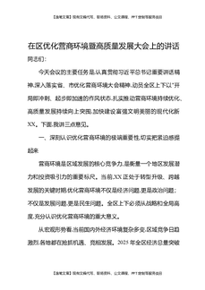 在区优化营商环境暨高质量发展大会上的讲话.docx