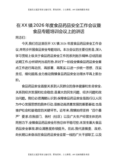 在XX镇2026年度食品药品安全工作会议暨食品专题培训会议上的讲话.docx