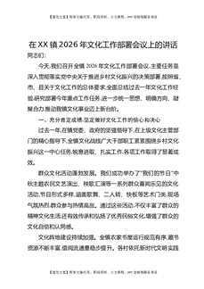 在XX镇2026年文化工作部署会议上的讲话.docx