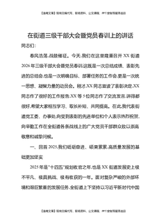 在街道三级干部大会暨党员春训上的讲话.docx