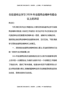 在街道传达学习2026年全国两会精神专题会议上的讲话.docx