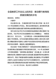 全县教研工作会议上的讲话:推动墨竹教育高质量发展的新步伐.docx