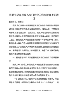 县委书记在残疾人专门协会工作座谈会上的讲话.docx
