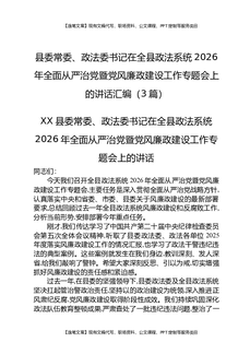 县委常委、政法委书记在全县政法系统2026年全面从严治党暨党风廉政建设工作专题会上的讲话汇编(3篇).docx