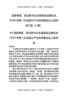 县委常委、政法委书记在县委政法委机关2026年第一次全面从严治党专题会议上的讲话汇编(2篇).docx