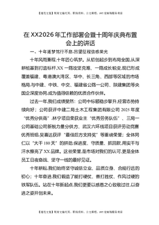 在XX2026年工作部署会暨十周年庆典布置会上的讲话.docx