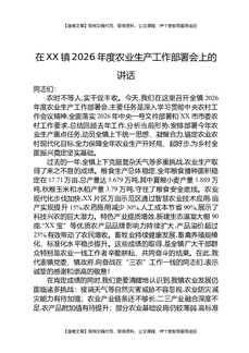 在XX镇2026年度农业生产工作部署会上的讲话.docx