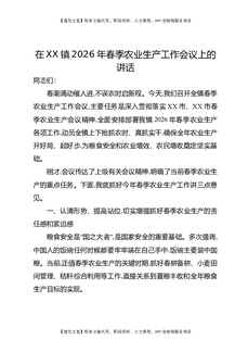 在XX镇2026年春季农业生产工作会议上的讲话.docx