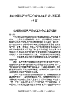 推进全面从严治党工作会议上的讲话材料汇编(4篇).docx