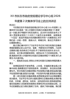 XX市长在市政府党组理论学习中心组2026年度第2次集体学习会上的主持讲话.docx