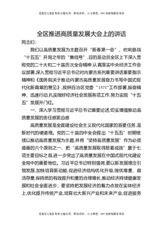 全区推进高质量发展大会上的讲话.docx