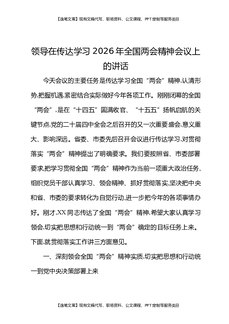 领导在传达学习2026年全国两会精神会议上的讲话.docx