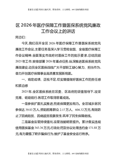区2026年医疗保障工作暨医保系统党风廉政工作会议上的讲话.docx