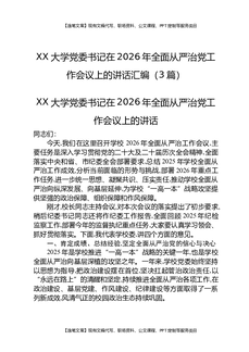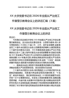 XX大学党委书记在2026年全面从严治党工作暨警示教育会议上的讲话汇编(3篇).docx