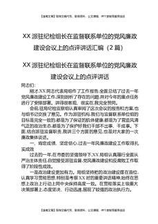 XX派驻纪检组长在监督联系单位的党风廉政建设会议上的点评讲话汇编(2篇).docx