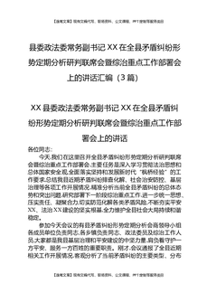 县委政法委常务副书记XX在全县矛盾纠纷形势定期分析研判联席会暨综治重点工作部署会上的讲话汇编(3篇).docx