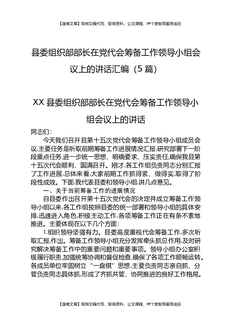 县委组织部部长在党代会筹备工作领导小组会议上的讲话汇编(5篇).docx