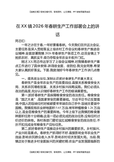 在XX镇2026年春耕生产工作部署会上的讲话.docx