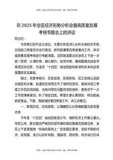 全区经济形势分析会暨高质量发展考核专题会上的讲话.docx
