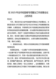 全市校园餐专项整治工作部署会议上的讲话.docx