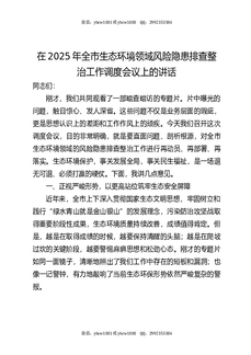 全市生态环境领域风险隐患排查整治工作调度会议上的讲话.docx