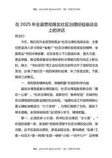 在2025年全县贯彻落实社区治理经验座谈会上的讲话.docx