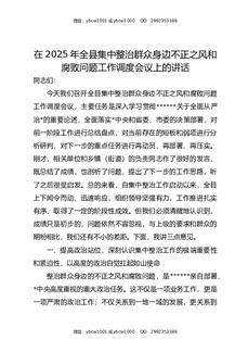 在2025年全县集中整治群众身边不正之风和腐败问题工作调度会议上的讲话.docx