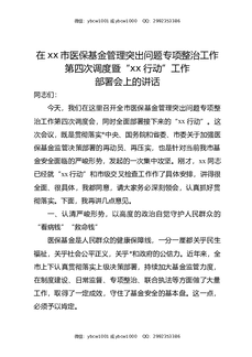在XX市医保基金管理突出问题专项整治工作第四次调度暨“XX行动”工作部署会上的讲话.docx