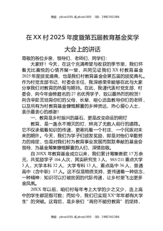 在XX村2025年度暨第五届教育基金奖学大会上的讲话.docx