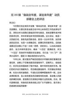 在XX镇“奋战全年度、谋划来年度”动员部署会上的讲话.docx