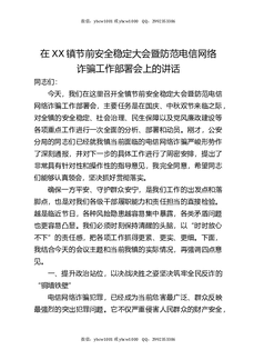 在XX镇节前安全稳定大会暨防范电信网络诈骗工作部署会上的讲话.docx