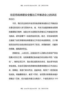 在区危险房屋安全整治工作推进会上的讲话.docx