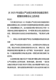 乡2025年全面从严治党主体责任检查反馈问题整改部署会议上的讲话.docx