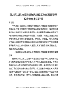 县人民法院持续推进作风建设工作部署暨警示教育大会上的讲话.docx