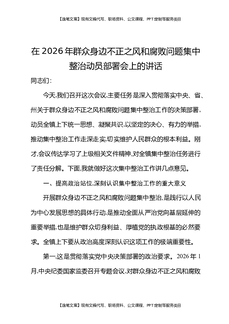 在2026年群众身边不正之风和腐败问题集中整治动员部署会上的讲话.docx