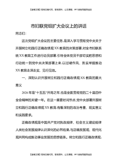 市妇联党组扩大会议上的讲话.docx