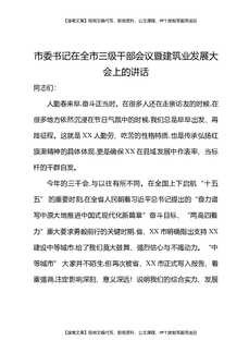 市委书记在全市三级干部会议暨建筑业发展大会上的讲话.docx