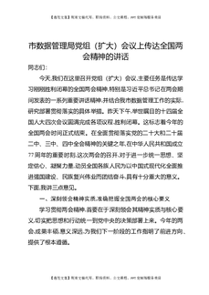 市数据管理局党组(扩大)会议上传达全国两会精神的讲话.docx