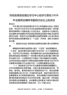 市民政局党组理论学习中心组学习贯彻2026年全国两会精神专题研讨会议上的讲话.docx