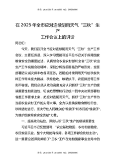 在2025年全市应对连续阴雨天气“三秋”生产工作会议上的讲话.docx