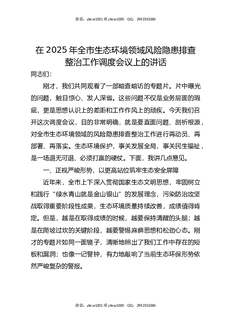 在2025年全市生态环境领域风险隐患排查整治工作调度会议上的讲话.docx