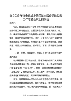 在2025年度全镇城乡居民基本医疗保险收缴工作专题会议上的讲话.docx