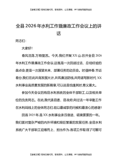 全县2026年水利工作暨廉政工作会议上的讲话.docx