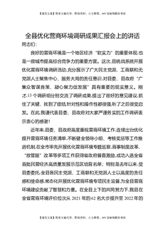 全县优化营商环境调研成果汇报会上的讲话.docx