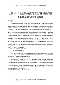 全县2026年度群众身边不正之风和腐败问题集中整治推进会议上的讲话.docx